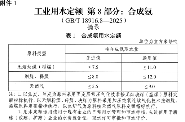 附件:1.《工业用水定额第8部分:合成氨》(GB/T18916.8-2025)摘录