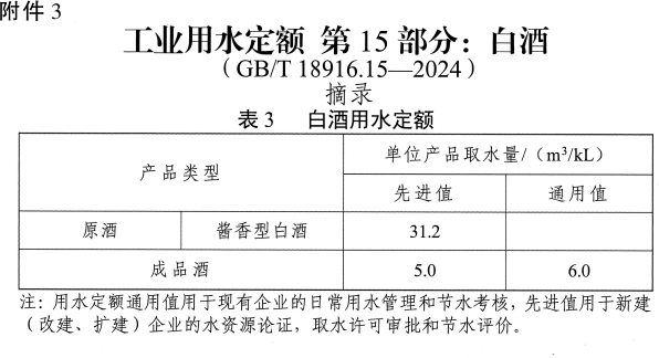 3.《工业用水定额第15部分:白酒》(GB/T18916.15-2024)摘录